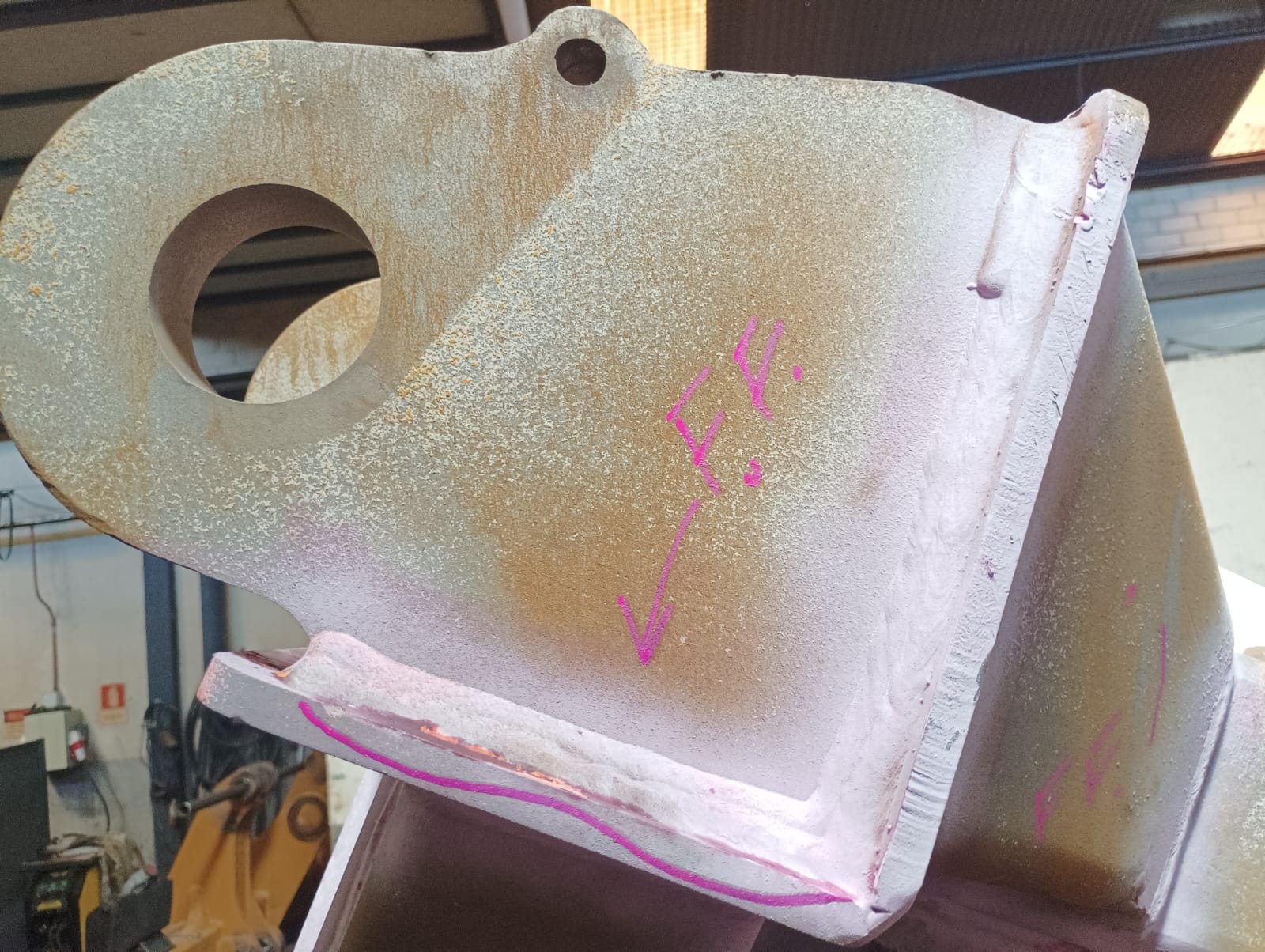 Técnica de inspección mediante un Yugo Electromagnético, se emplean partículas magnéticas para identificar defectos superficiales y sub-superficiales en materiales ferromagnéticos